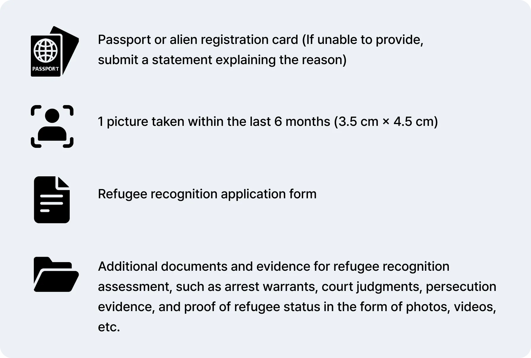 4) Documents Required for Refugee Recognition Application